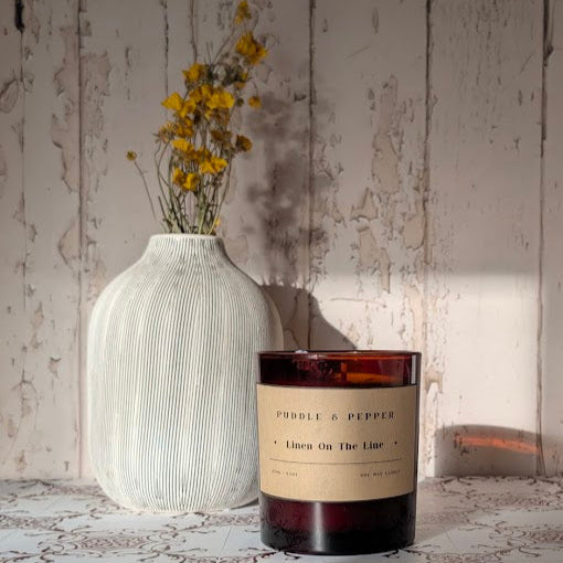 Crisp, clean, and quietly comforting — this fragrance captures the simple pleasure of sun-dried sheets swaying in a gentle breeze. Light floral notes blend with soft powdery undertones, creating a scent that feels fresh, uplifting, and effortlessly homely. Hand-poured with natural soy wax and a pure cotton wick, this 260g candle offers around 50 hours of clean, even burn — bringing the feeling of a bright, breezy day indoors.